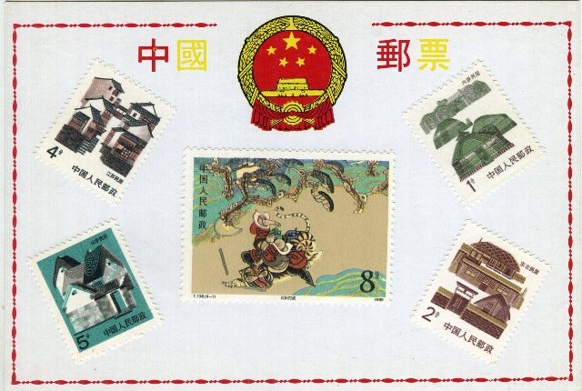 ちなみに周りの小さな切手は、中国民居シリーズの当時の通常切手です。