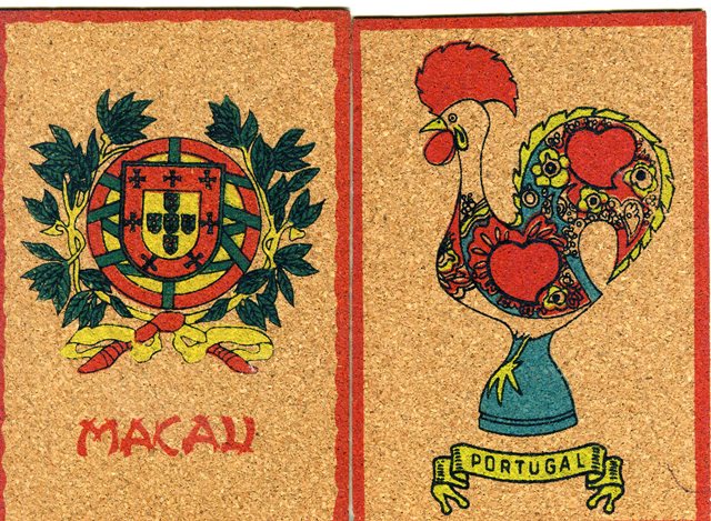 マカオ土産のコルクの絵葉書と切手が出てきました。