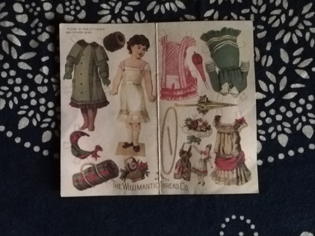 こんなの出てきました(^▽^) 着せ替え人形(Paper doll)...です。 アメリカの19世紀末ごろのもののようです。 (もちろん復元もの) 着せ替え人形といったらバービーとかリカちゃん人形ですが、 私が子供のころはまだ、この紙タイプのもの日本でも現役でした。 裏はこんな感じ ~>゜)~<蛇足>~~ アメリカ時代のに、何かのイベントの時にいただいたものかと...。 四半世紀以上も前なので、記憶が定かじゃなくて残念です。