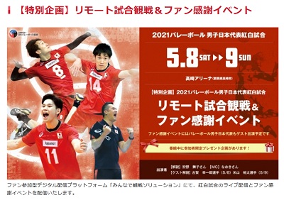 バレーボール男子日本代表紅白試合でリモート試合観戦&ファン感謝をイベント開催 5月8日(土)、9日(日)高崎アリーナ(4月21日追記)からのSS
