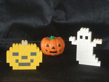 かなり昔に作りました。 LEGOのサイトで紹介されていたハロウィンものです。 オレンジが少なくて、ジャックオーランタンは黄いろになってしまいました(^^ゞ