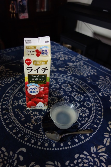 茘枝風味のジュースを見かけたので、茘枝ゼリーを作ってみました(^^♪