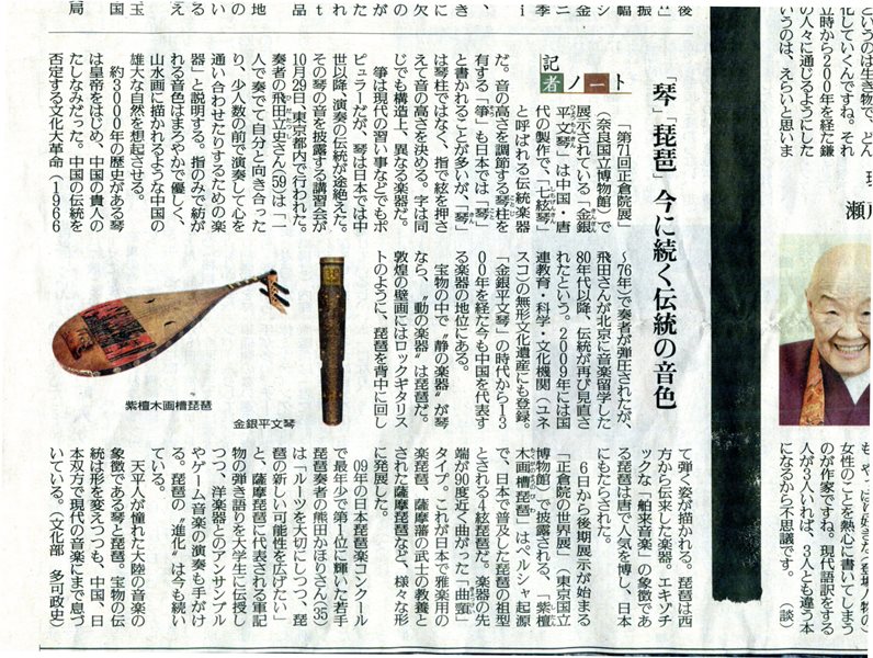 現在開催中の正倉院展で展示されている「金銀平文琴」関連の記事でした。