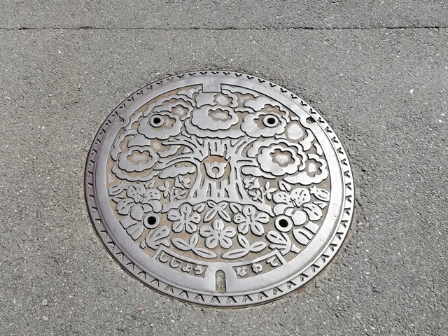 木は"市の木"のクスノキ、下の部分の"花は市"の花サツキで
