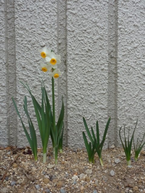 住んでいるアパートの玄関口にて このところ寒い日が続いていますが、 植物たちは春になってます。