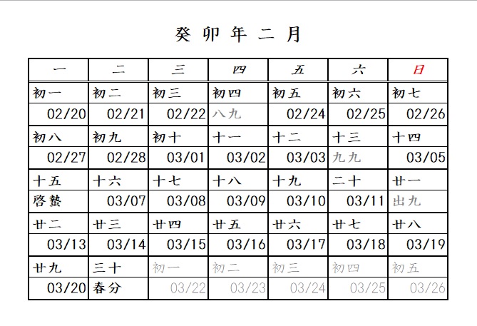 ぼっとしている間に、もうすぐ太陰暦の二月。