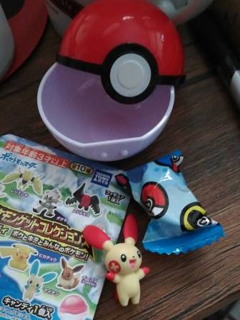 スーパーのお菓子コーナーで、ポケモンボールを見つけて、