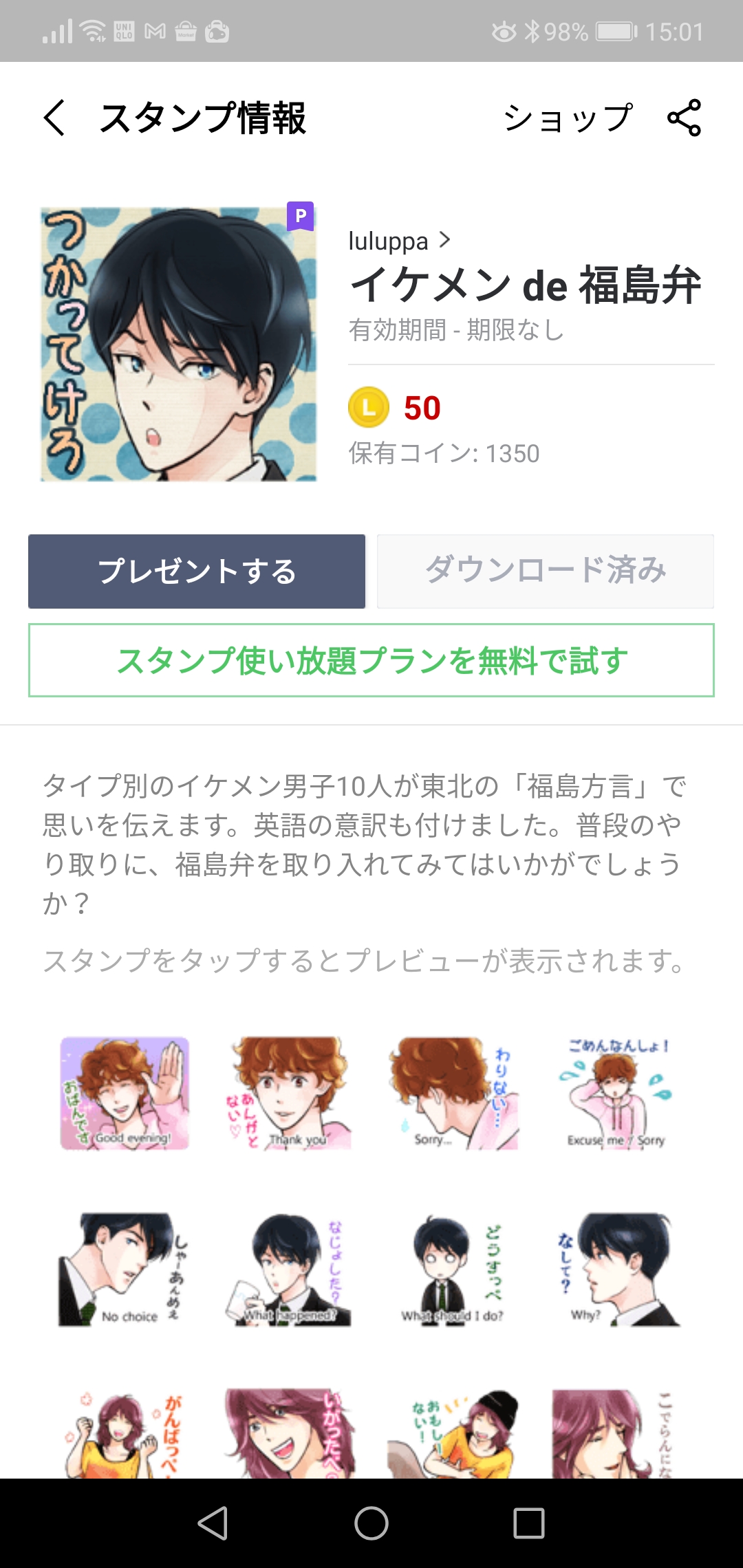 「LINEスタンプにイケメンの福島弁ってのがある」と友達から紹介されて、