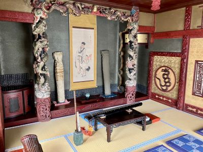 当地三春町歴史民俗資料館の学芸員の方々が館収蔵の掛け軸を掛けてくださいました。