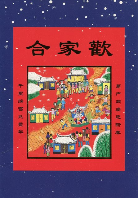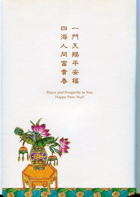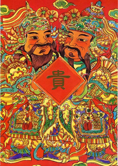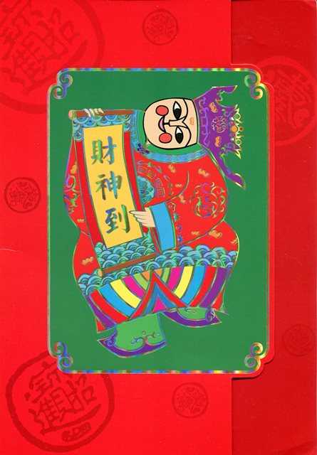 ひらくと春節向けのおめでたい対句「春聯」がかいてあります。