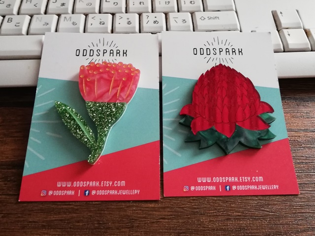 そういえば娘が、去年オーストラリアの花のブローチのお土産。
