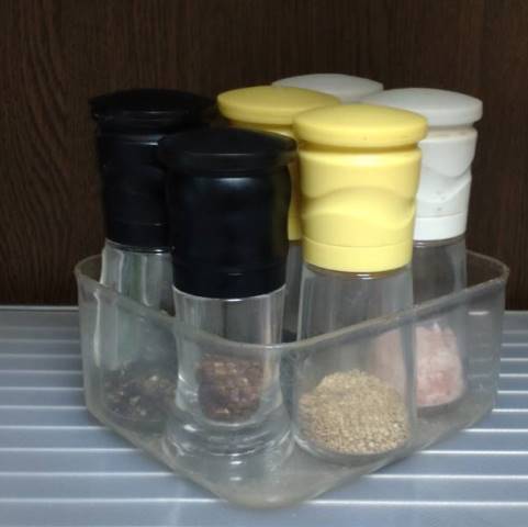 京セラのミルのシリーズは3種類あり、黒は胡椒、黄色はゴマ、白は岩塩です。