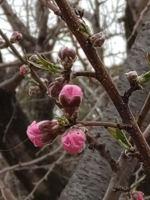 いわゆる桃色のももはまだつぼみがほころび始め....