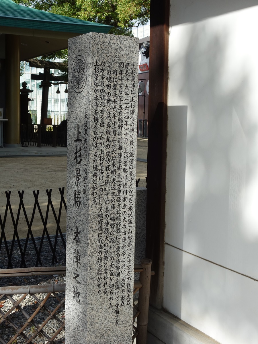 八釼神社は大阪冬の陣の時に上杉景勝が本陣を布いた場所だとのことです。
