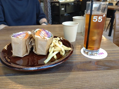 昼食はジョーテラス大阪でハンバーガーとサンドイッチ。